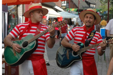 Sie können das Duo Gondolieri auch im Kombination mit dem Riesen Gondoliere (auf Stelzen) buchen!